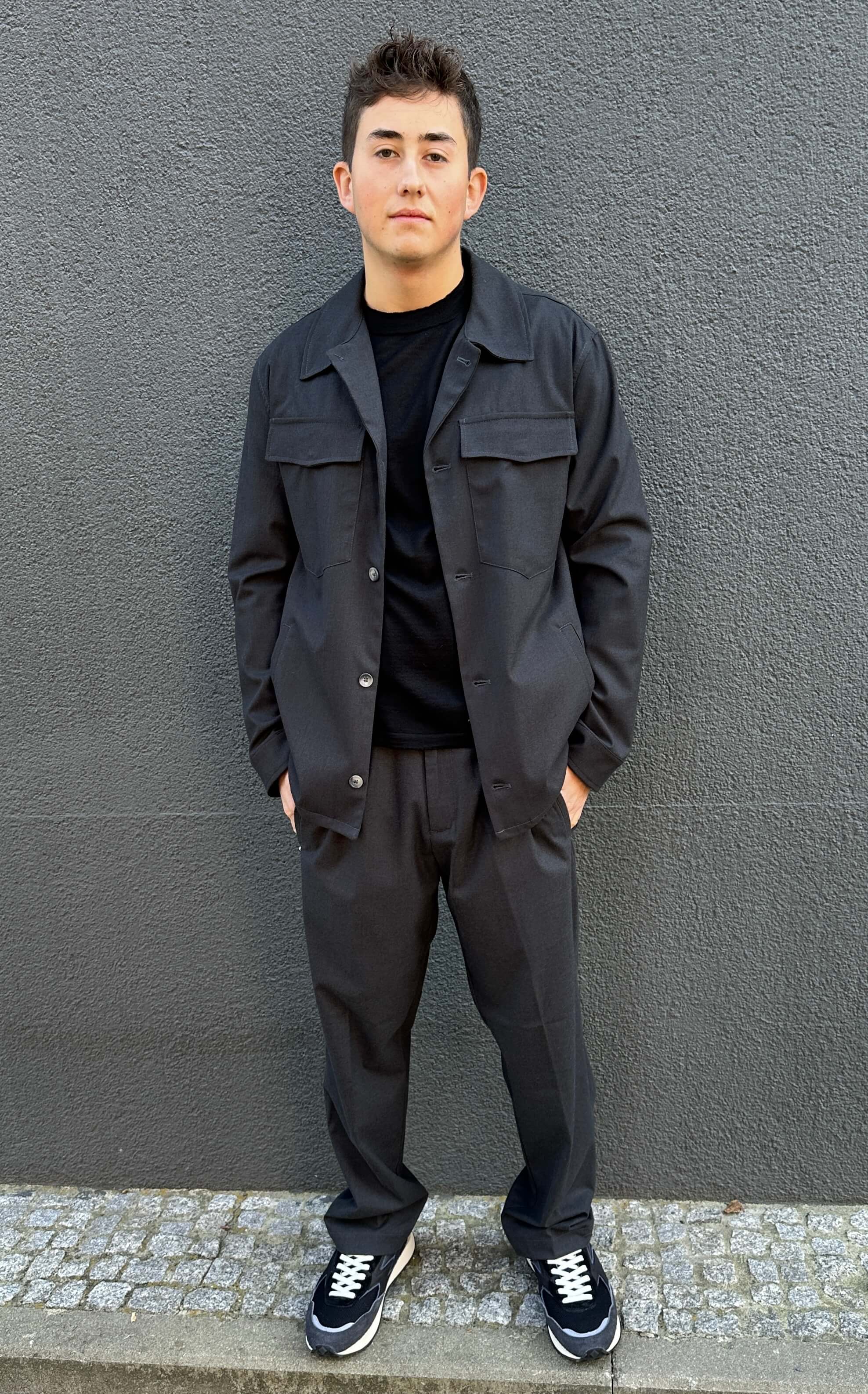 Cooles Overshirt in Graphite mit seitlichen Taschen und Brusttaschen mit Druckknpf. 68% Polyester, 30% Viscose, 2% Elastan. Fällt größengenau aus.