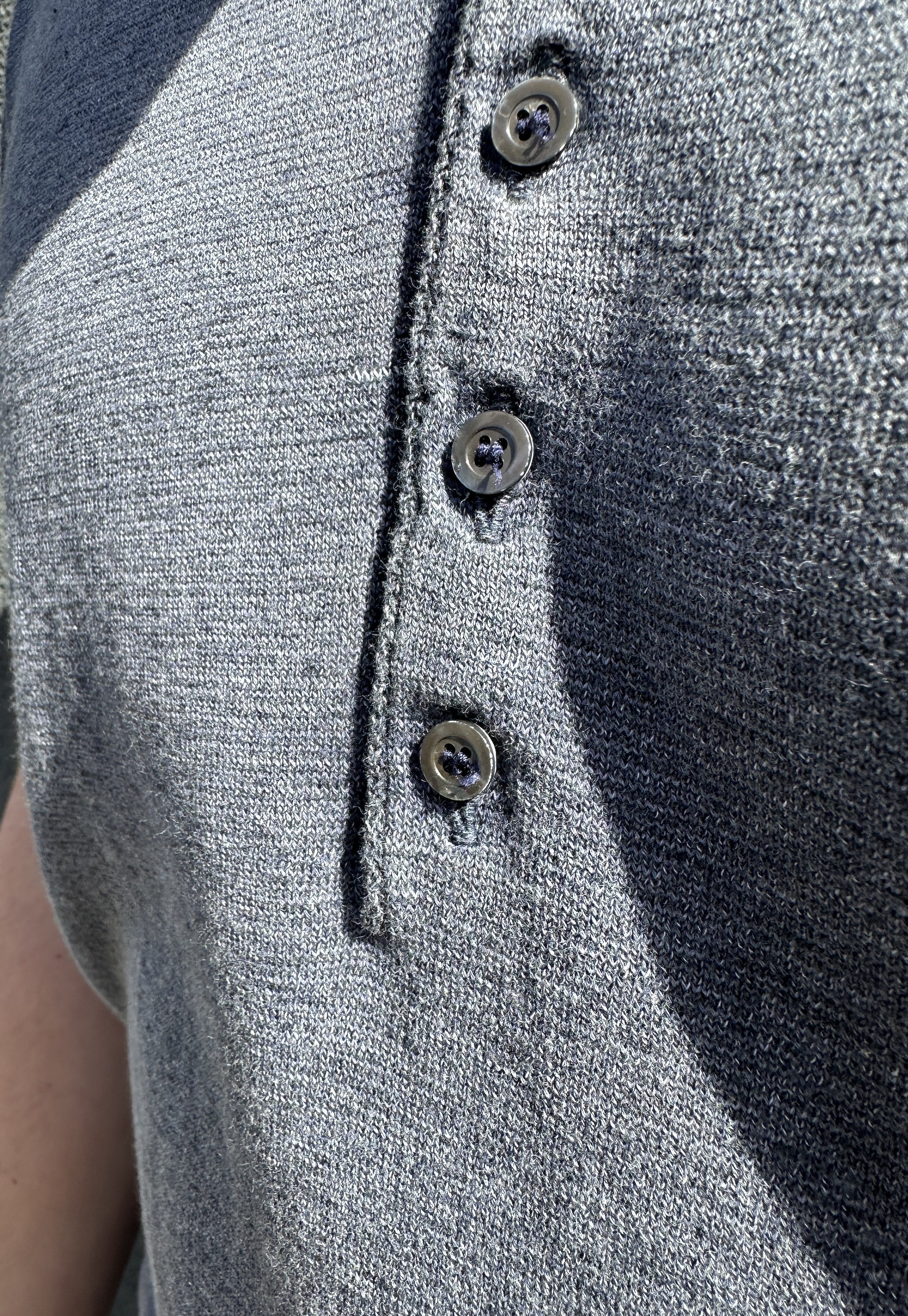 Edles Feinstrickpolo in Vintagewashed Denim Blue Melange mit Perlmuttknöpfen. 100% Baumwolle.... mehr